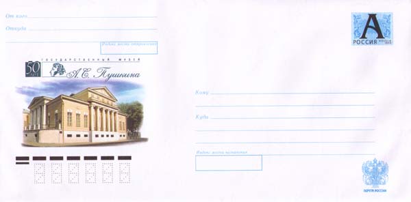 50 лет Государственному музею Александра Пушкина в Москве. Здание музея, автопортрет Александра Пушкина.