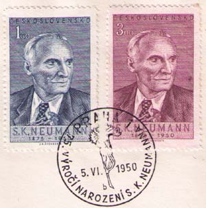 Прага. 75 лет со дня рождения Станислава Неймана. Памятный текст, гвоздика.