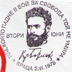 Враца. День памяти павших за свободу Болгарии. Портрет Христо Ботева, его слова: «Тот, кто пал в бою за свободу, тот не умер».