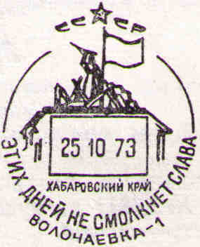 Волочаевка Хабаровского края. Мемориальный музей волочаевских боев в годы гражданской войны. Деталь скульптурного офрмления здания музея, цитата из песни на слова Петра Парфенова «Партизанская» (переводная дата).